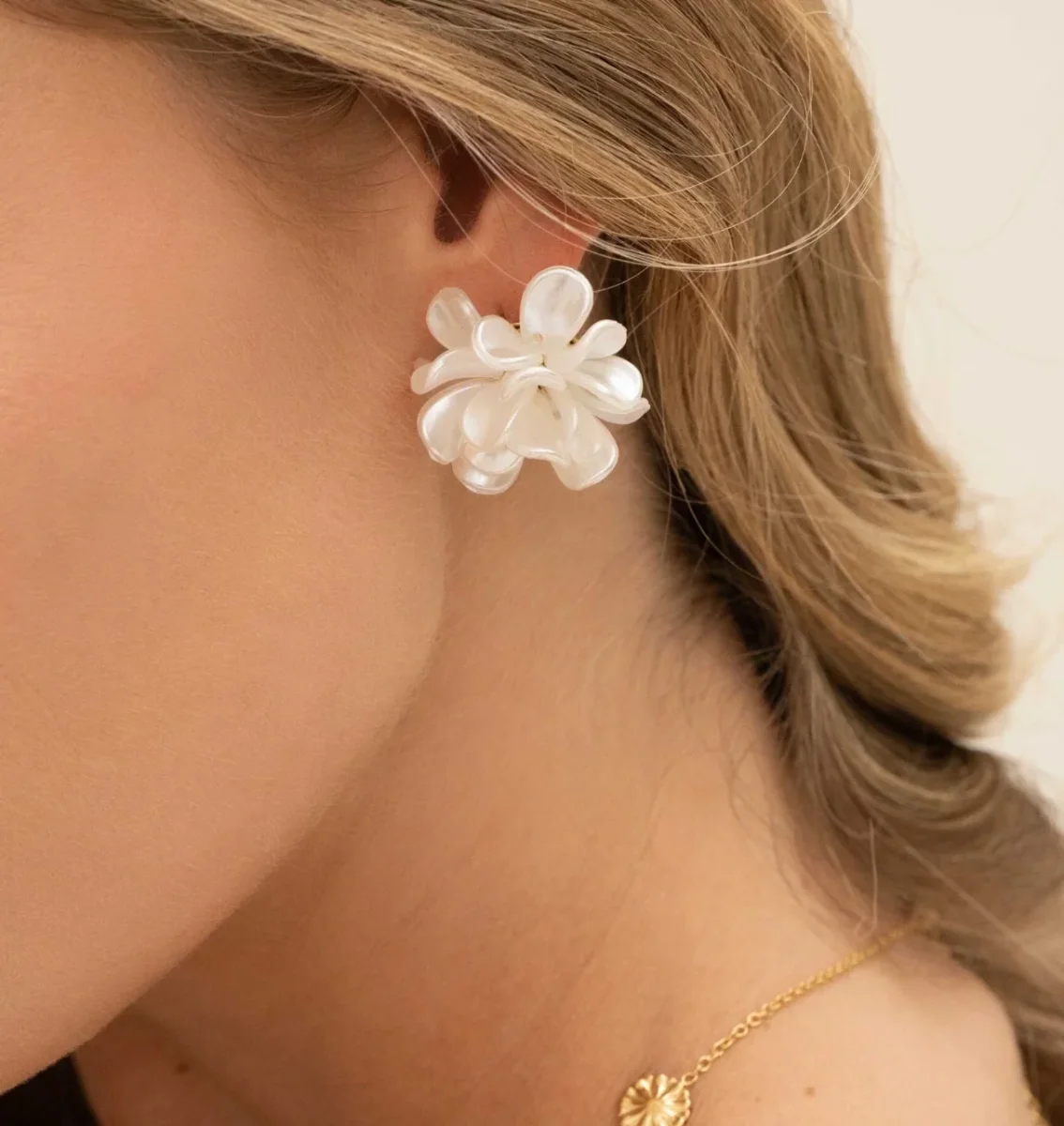 Illuminez votre visage avec ces boucles d’oreilles en forme de fleur, aux pétales subtilement nacrés. Un design élégant et délicat, parfait pour apporter une touche de fraîcheur naturelle à vos tenues.