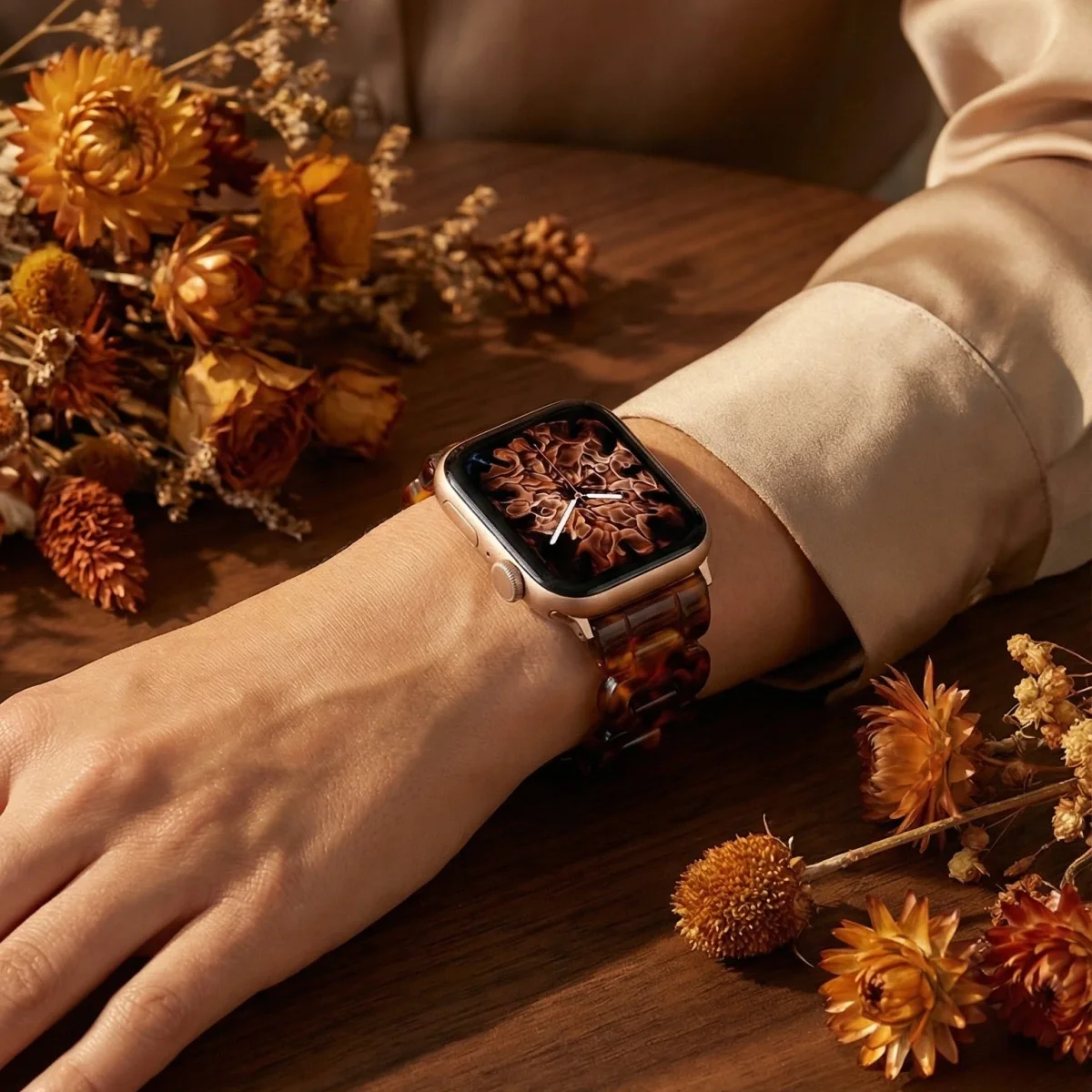 Disponible en plusieurs nuances — écaille brune profonde, noir intense, blanc nacré, rose marbré ou transparent lumineux — ce bracelet s’adapte à votre style et à vos envies. Il transforme une montre connectée en accessoire raffiné, capable d’accompagner une tenue habillée comme un look plus casual. C’est l’équilibre parfait entre allure sophistiquée et modernité assumée, pour celles qui veulent que chaque détail compte.