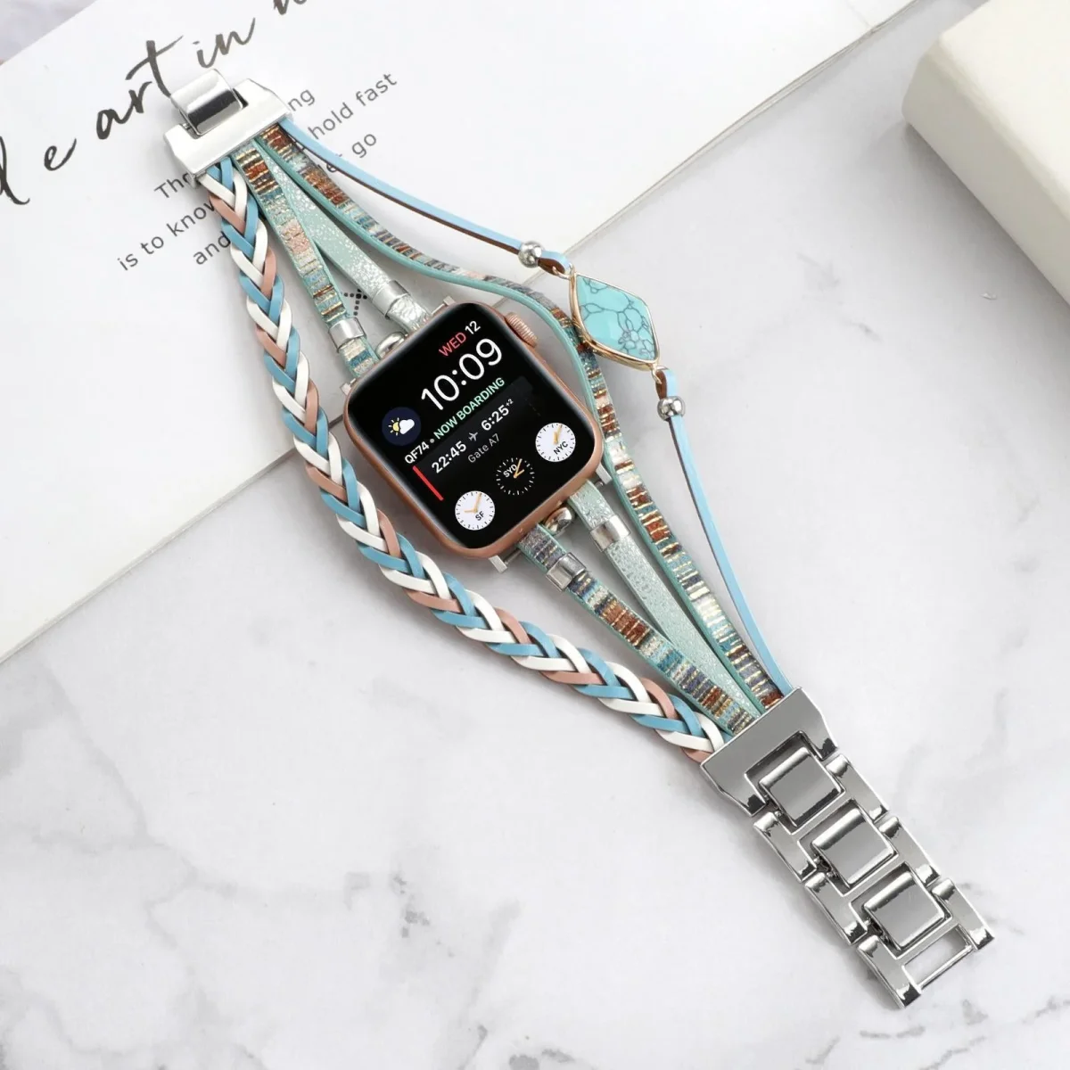 Parfaitement compatible avec les Apple Watch (du 38mm au 45mm), ce bracelet est l’allié de celles qui aiment allier technologie et style sans compromis. Que ce soit pour un look affirmé, une tenue romantique ou un moment de détente, il s’adapte à toutes les envies grâce à son design multiliens finement travaillé. C’est bien plus qu’un simple accessoire, c’est une touche de personnalité qui transforme chaque mouvement en déclaration de goût. Adoptez-le, et laissez votre poignet parler de vous avec délicatesse et originalité.