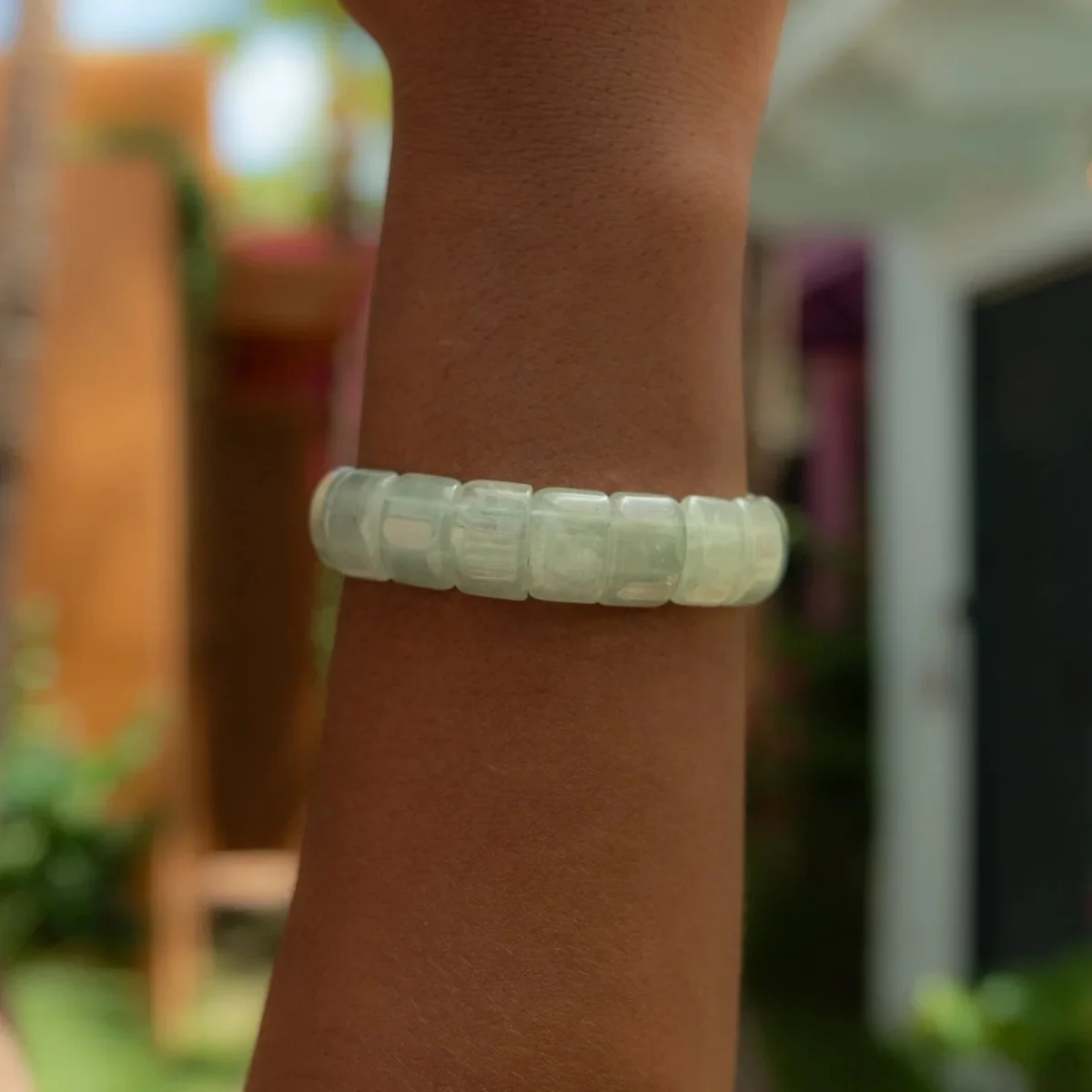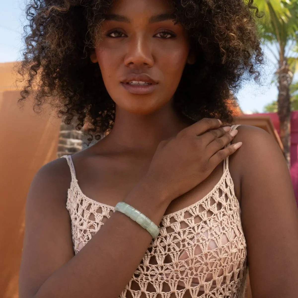 Découvrez l’éclat subtil de ce bracelet à maillons rectangulaires, façonné dans une magnifique aventurine aux nuances vert d’eau. Chaque perle, soigneusement polie pour offrir une surface lisse et agréable au toucher, révèle les inclusions naturelles et uniques de cette pierre fascinante. Conçu avec un fil élastique robuste, ce bijou s’adapte parfaitement à votre poignet, vous offrant un confort optimal tout au long de la journée, sans compromis sur l’élégance.