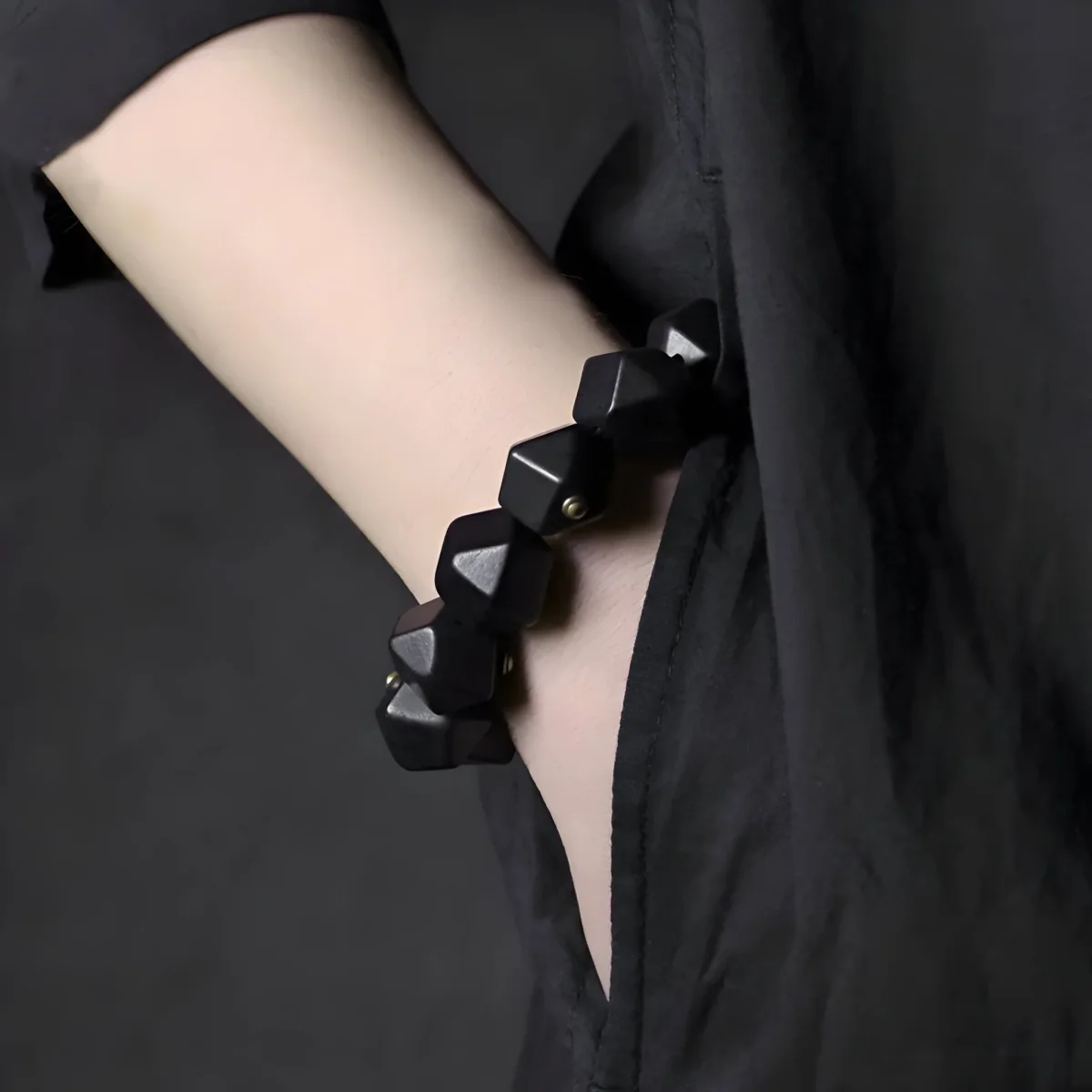 Découvrez l’essence de la sérénité et l’ancrage de la nature avec notre bracelet en bois d’ébène. Chaque perle de ce bijou est taillée avec précision dans l’ébène, un bois réputé pour sa robustesse et son éclat sombre et profond. Les perles noires, polies à la perfection, se marient harmonieusement avec de subtils accents en cuivre, ajoutant une touche de raffinement discret à cet accessoire unique.