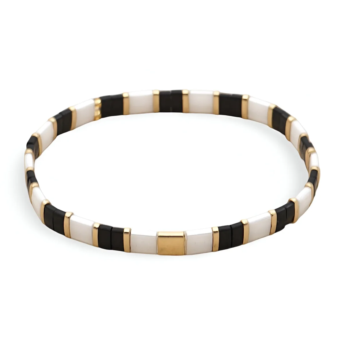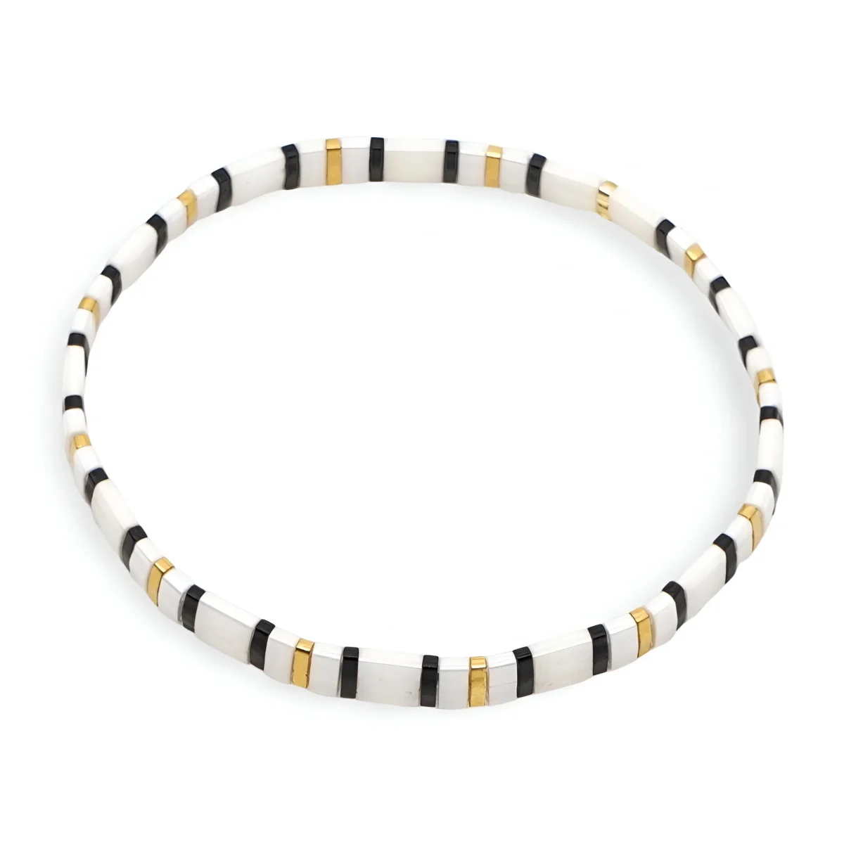 Découvrez l’élégance discrète de ce bracelet en perles du Japon, conçu pour sublimer chaque tenue avec une touche raffinée. Les perles de verre Tila, finement sélectionnées, offrent des teintes douces de blanc et de doré, créant un contraste harmonieux et élégant. La simplicité de ce design permet à ce bijou de s’adapter à diverses occasions, du quotidien aux événements spéciaux.