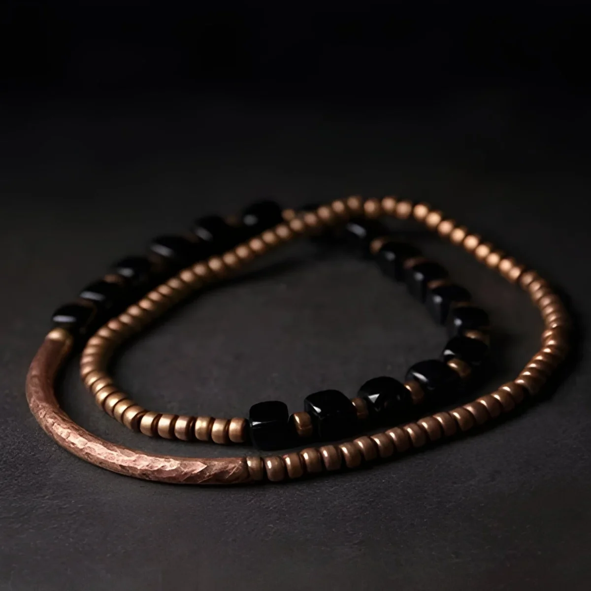 Découvrez le charme discret mais prononcé de ce chic bracelet. Cette parure est conçue pour les femmes qui cherchent à ajouter une touche de mystère et de caractère à leur poignet. Les perles d’onyx, choisies pour leur brillance et leur couleur intense, s’harmonisent parfaitement avec les reflets chauds du cuivre.