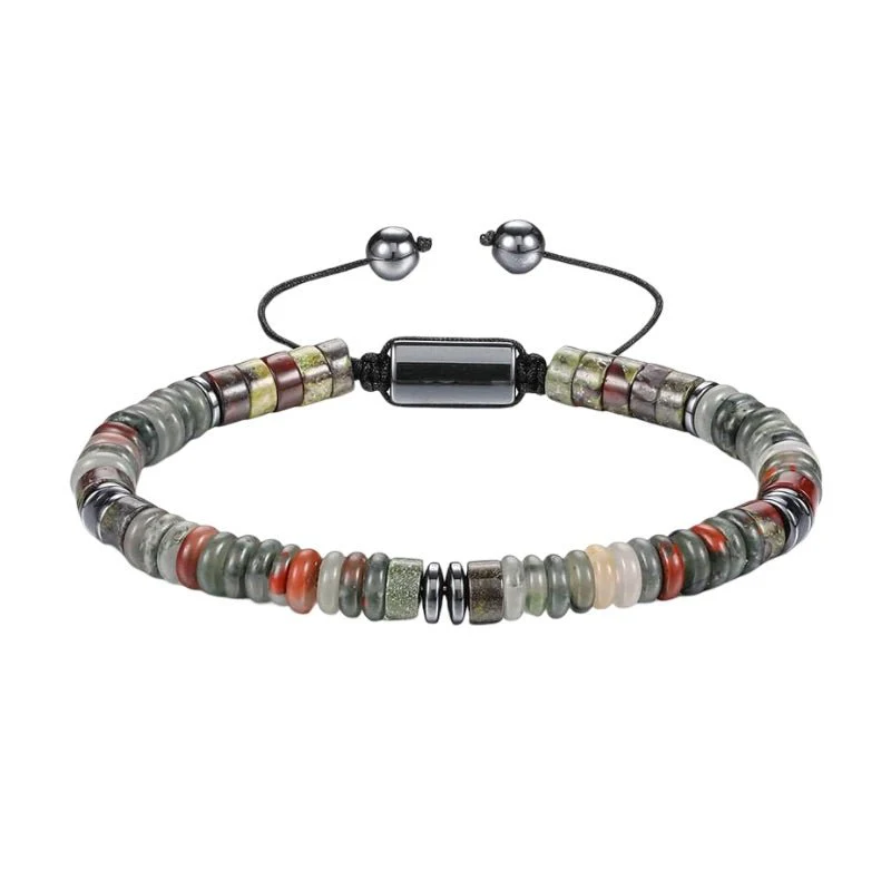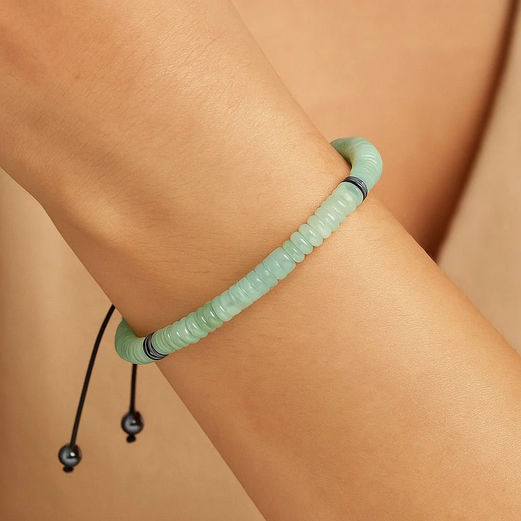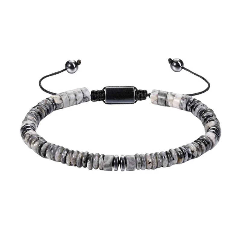 Explorez une harmonie de textures et de couleurs avec ce bracelet composé de pierres naturelles polies. Chaque perle plate semble capturer un instant figé de la nature, révélant des nuances minérales uniques et des contrastes raffinés. Le tressage du cordon offre une tenue stable et un ajustement parfait, tout en renforçant le caractère décontracté et raffiné du bijou.