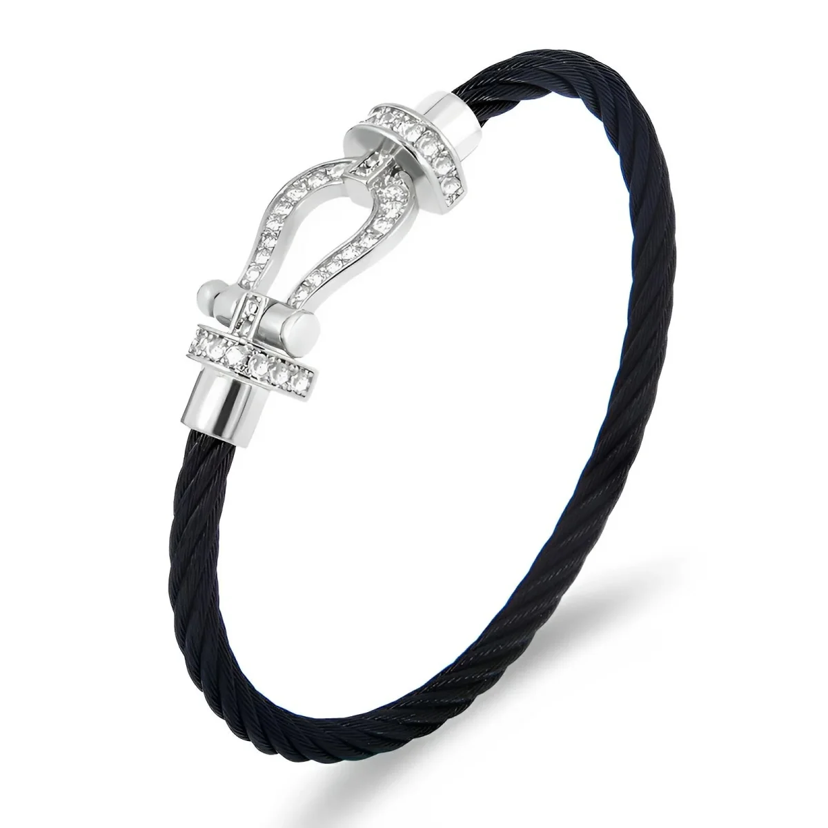 Pour garantir un confort optimal et une sécurité renforcée, ce bracelet est équipé d’un fermoir magnétique discret et fiable. Ce système pratique permet une manipulation facile tout en assurant une tenue parfaite. Que ce soit pour une sortie spéciale ou pour sublimer votre style quotidien, ce bracelet en titane avec son fer à cheval serti d’oxyde de zirconium est un choix incontournable pour toute femme désirant allier style et raffinement.
