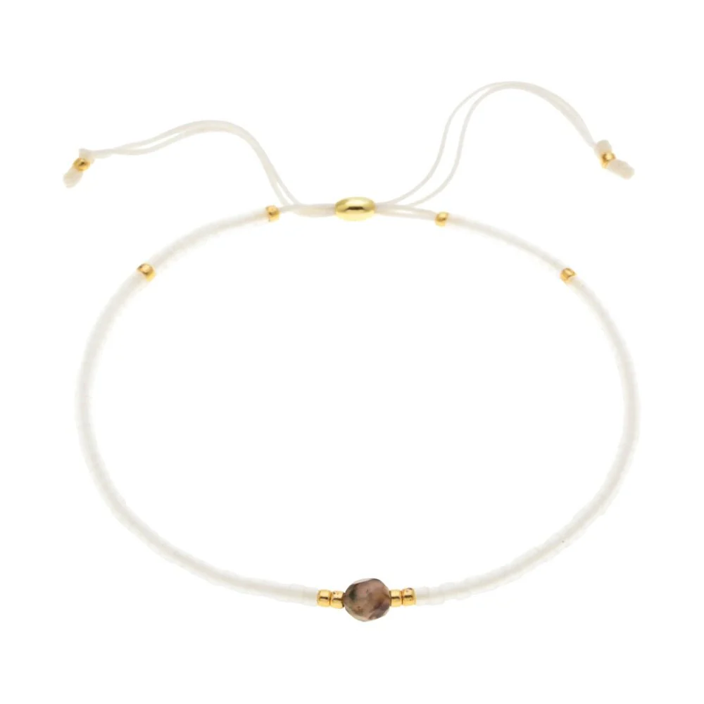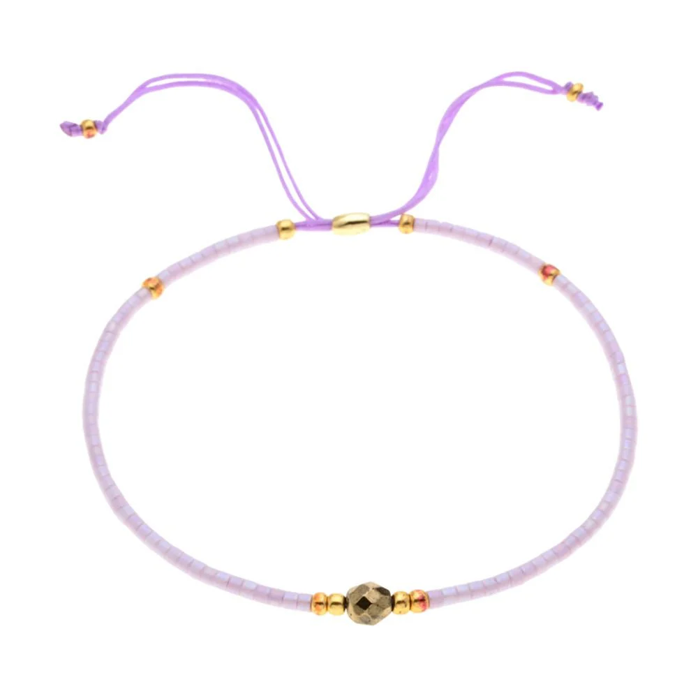 Un éclat discret au poignet qui évoque la légèreté des jours heureux. Ce bracelet fin mêle des perles japonaises MIYUKI aux reflets subtils, associées à une perle centrale symbolique et quelques touches dorées scintillantes. Il se pose comme une caresse, équilibrant éclat et douceur dans un jeu de couleurs harmonieuses.