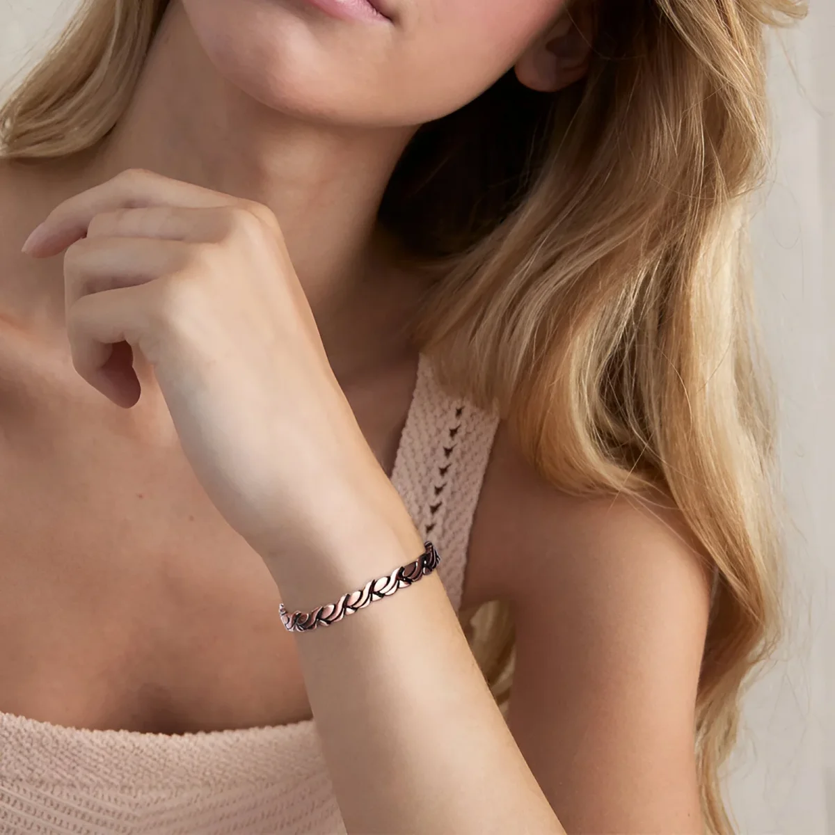 Avec une allure raffinée, ce bracelet est idéal pour les femmes cherchant à allier style et bien-être. Les mailles entrelacées ajoutent une touche de sophistication à ce bijou, faisant de lui un accessoire polyvalent qui peut être porté en toute occasion. Le fermoir à cliquet assure une fermeture sécurisée et facile, permettant de le mettre et de l’enlever en un instant.