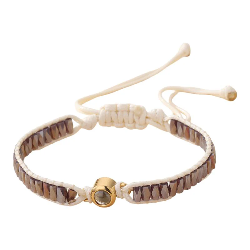 Découvrez l’élégance subtile de ce bracelet à cordon tressé, délicatement orné de perles de cristal aux reflets envoûtants. Conçu pour épouser parfaitement les courbes de votre poignet grâce à son système d’ajustement fluide, il offre un confort absolu tout au long de la journée. La véritable magie de cette pièce réside dans sa lentille de projection centrale, un écrin secret en acier inoxydable prêt à accueillir votre souvenir le plus précieux. Chaque mouvement de votre main révèle la brillance captivante des perles, créant un jeu de lumière fascinant qui attire le regard avec une grâce naturelle.
