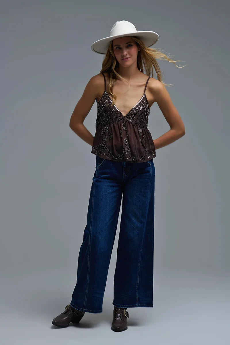 longueur: longueur pantacourt. SousCategorie: Top. Manches: Bretelles ajustables. Coupent: Ajustement standard. Style: Style de fête. détail: Ornements. Tissu: Mousseline de soie. runs true to size. S.