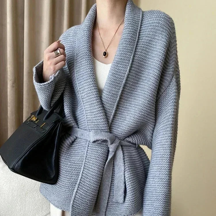 - 1x Cardigan en maille avec ceinture à nouer de la couleur de votre choix
