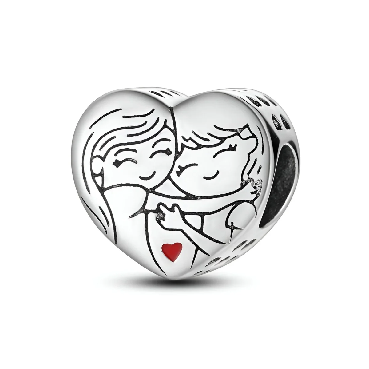 Ce charm en cuivre plaqué argent capture l’essence de l’amour entre soeurs avec un design tendre et délicat. La gravure sur la face avant représente deux soeurs s’enlaçant, symbolisant le lien fort et inébranlable qui les unit. Un petit coeur rouge ajoute une touche de couleur et de chaleur à cette illustration émouvante.