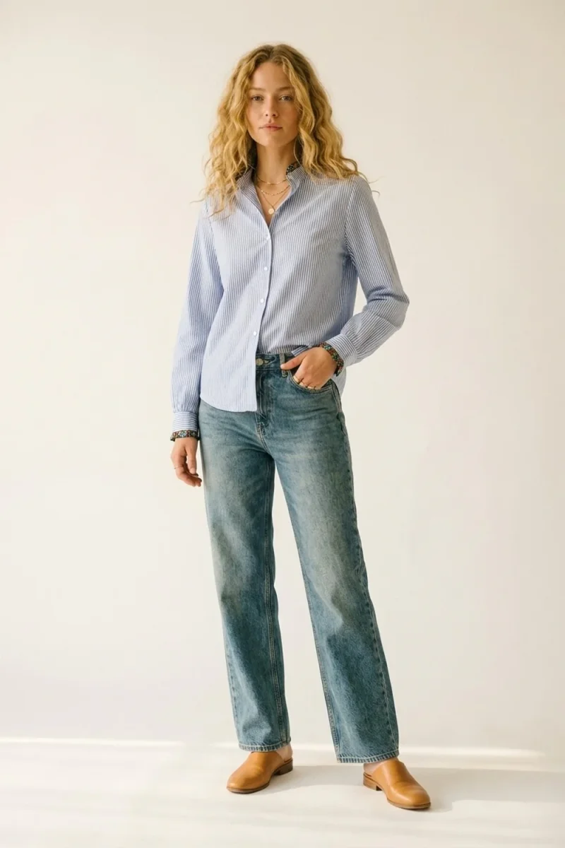 Une chemise rayee qui revisite un classique avec des finitions florales discretes. Sa coupe reguliere et son coton leger en font une piece facile a porter, ideale pour structurer vos looks avec subtilite.