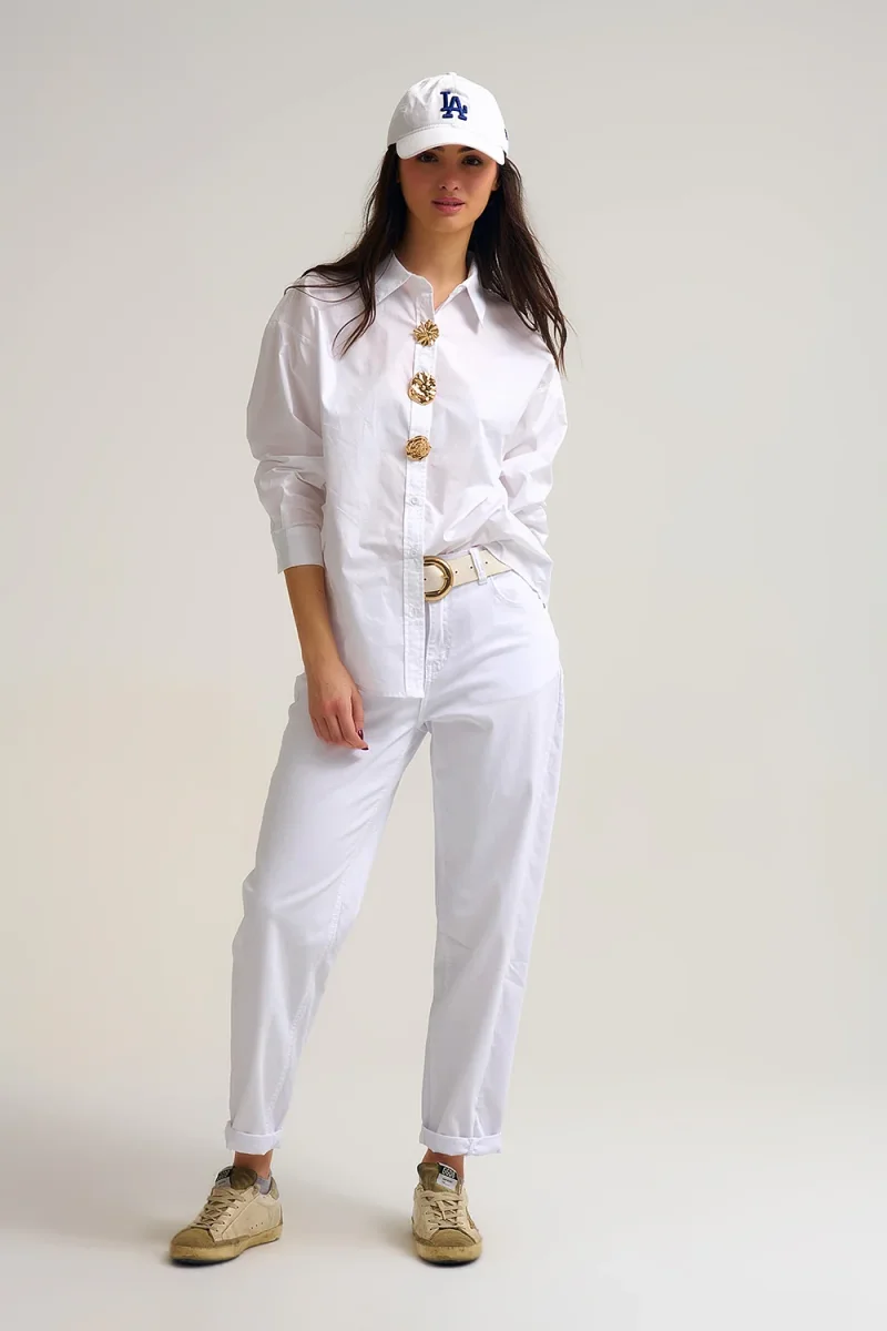Chemise en coton popeline coupe decontractee avec boutons dores