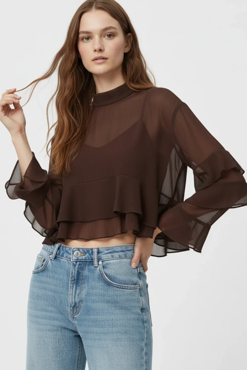 longueur: Longueur Asymétrique. SousCategorie: Top. collier: Encolure ras de cou. Manches: Manches longues. Coupent: Coupe décontractée. Style: Style romantique. Tissu: Mousseline de soie. runs true to size. S.
