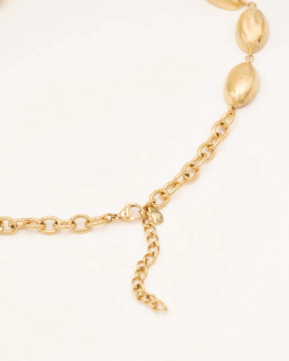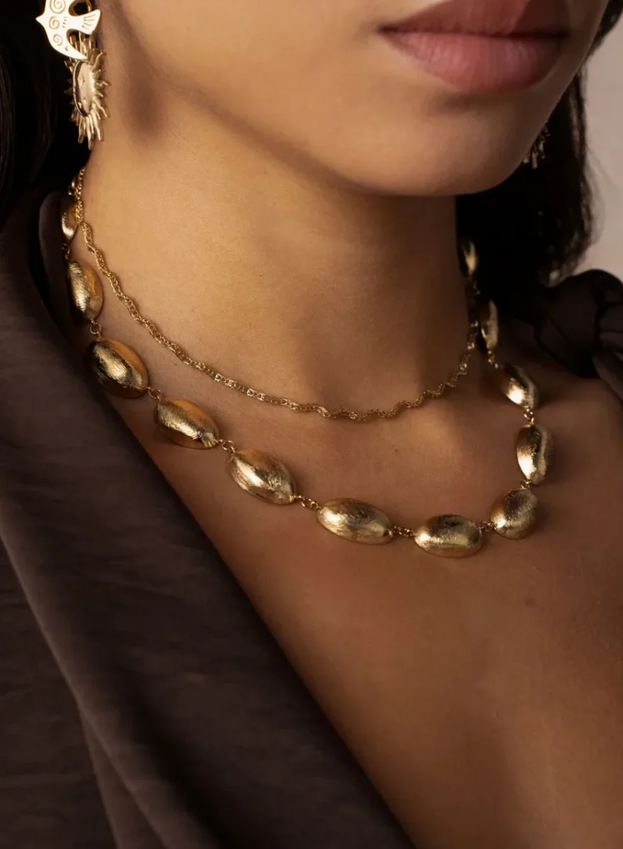 Sublimez votre port de tête avec ce collier à gros maillons ovales effet brossé, une pièce contemporaine et intemporelle à la fois. Sa texture subtile et sa forme incurvée en font un bijou fort et élégant, parfait pour rehausser toutes vos tenues.