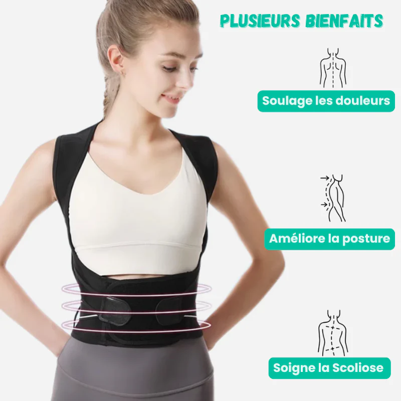 En effet, il offre un soutien immédiat et profond améliorant votre posture de manière significative pour que vous vous sentiez mieux et adoptiez une allure assurée. Conçu pour corriger et soutenir, il offre un chemin vers une meilleure posture et un soulagement durable !