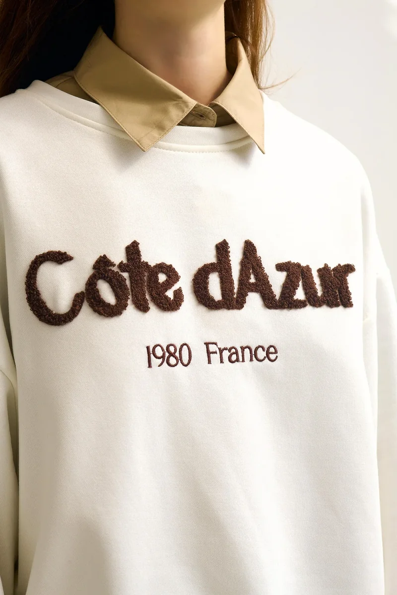 Un sweat oversize qui combine confort et detail brode pour un rendu facile a porter au quotidien. Sa teinte creme et sa coupe ample en font une piece douce et polyvalente, ideale pour des looks decontractes.