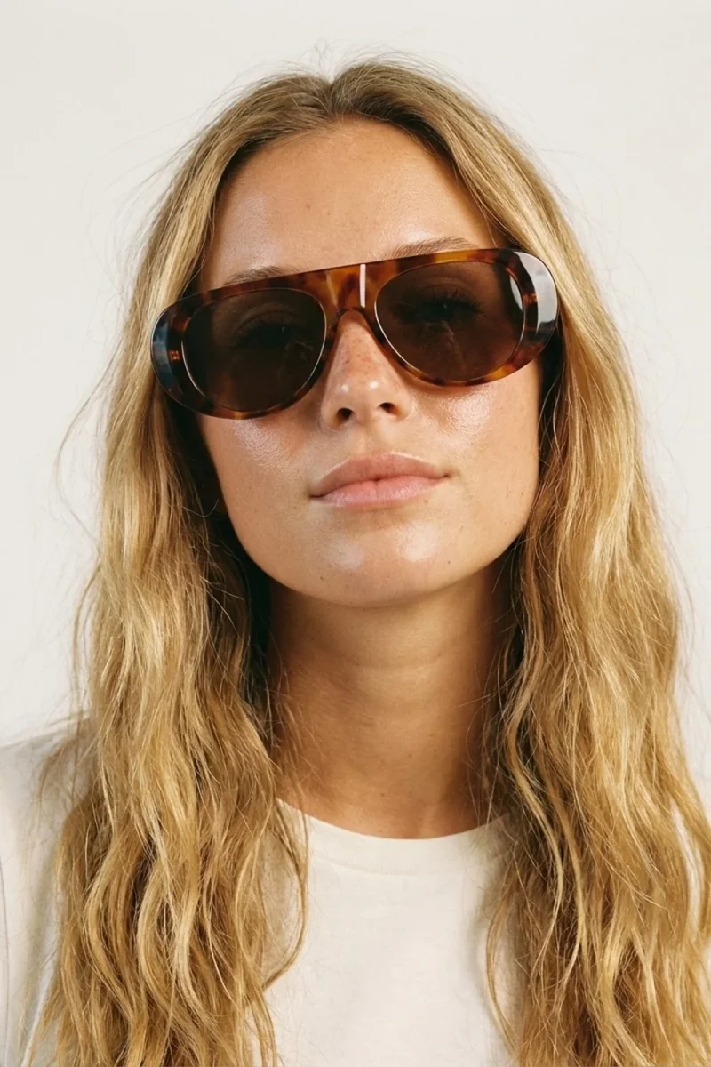 Ces lunettes de soleil élégantes présentent une monture marron tortue avec une finition brillante et un motif marbré subtil pour un charme classique. La silhouette surdimensionnée offre une couverture complète avec un look audacieux et à la mode parfait pour compléter une large gamme de tenues. Conçues avec des verres foncés qui offrent une protection UV adéquate elles allient mode et fonctionnalité sans effort. Idéales pour ajouter une touche de sophistication aux vêtements décontractés ou de plage ces lunettes de soleil apportent une touche intemporelle à votre collection d’accessoires d’été.