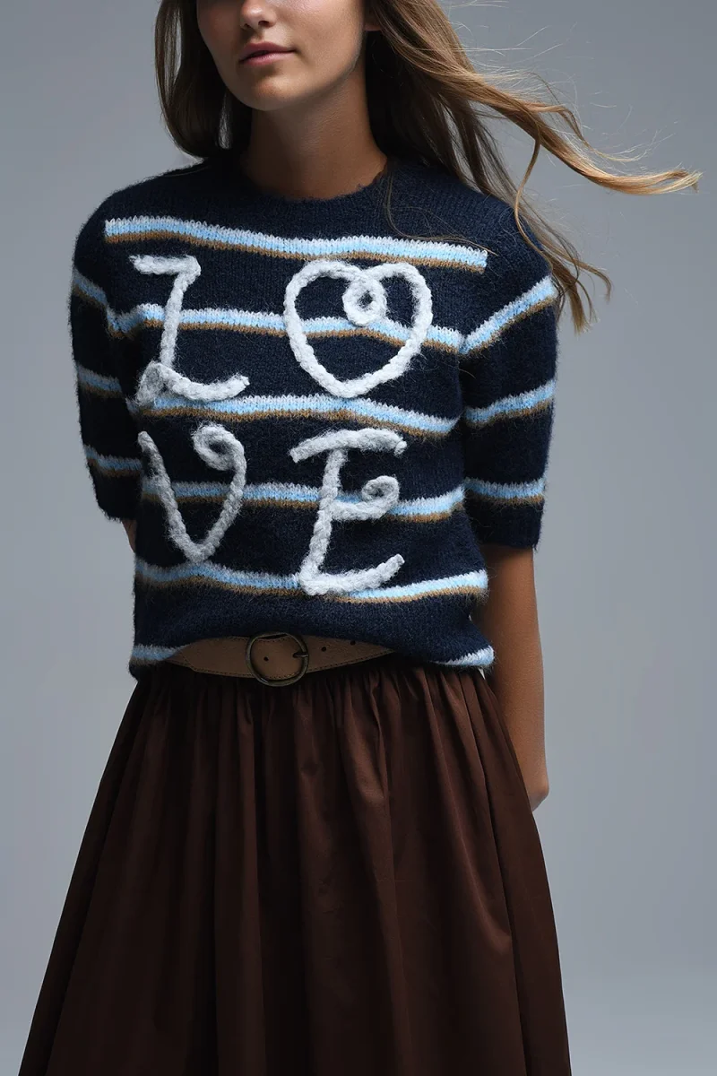 SousCategorie: Pull. collier: Encolure ras de cou. Manches: Manches courtes. Imprimer: motif à rayures. Coupent: Coupe décontractée. Style: Style de tous les jours. détail: Broderie. Tissu: Tricot doux. runs true to size. U.